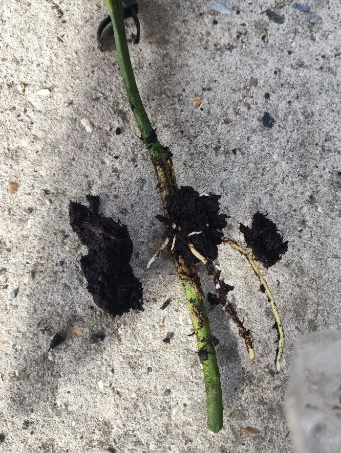 19 oktober 2025, bij het verplaatsen van de plant, toch al een wortel te zien