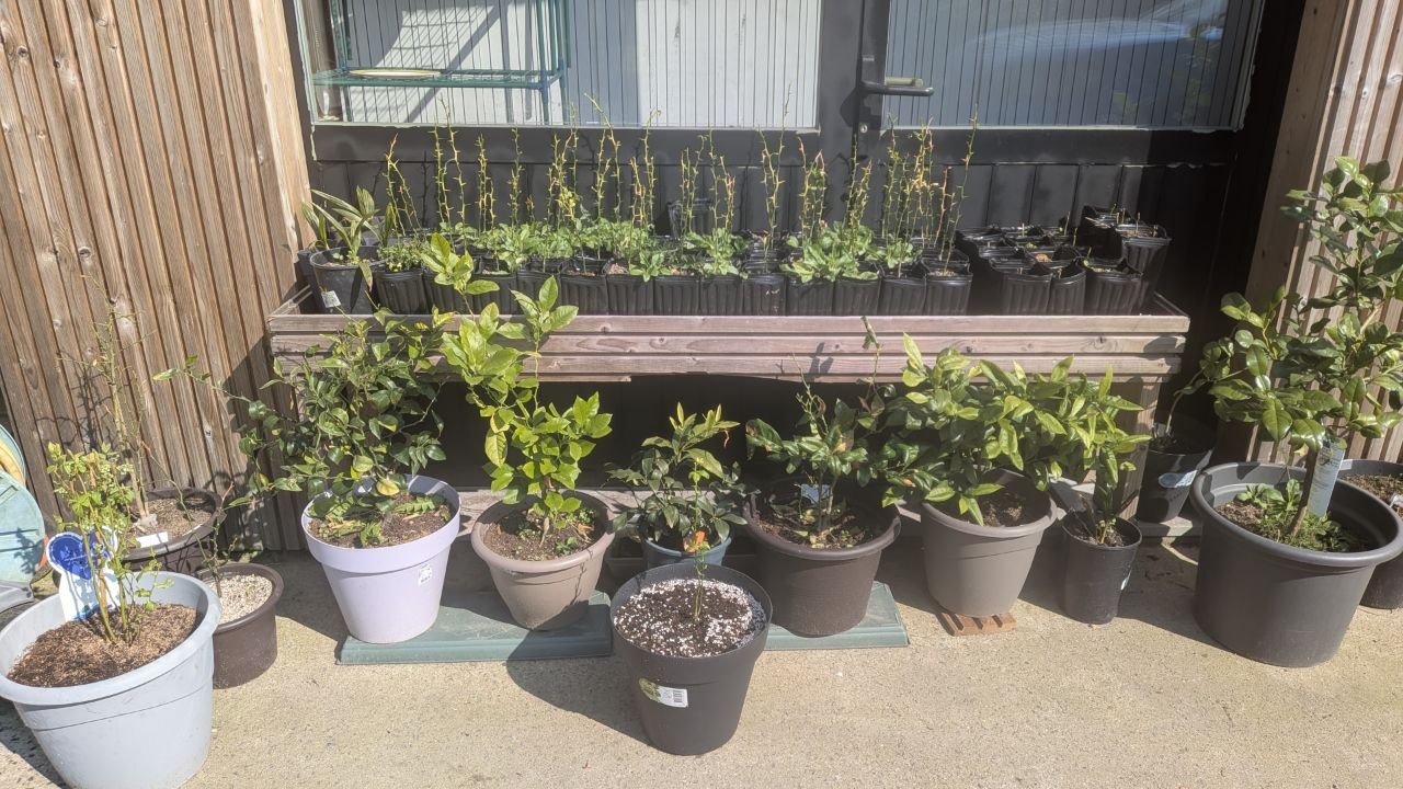 8 maart 2025: verschil in groei is duidelijk. 10 van de 20 geschilde afgedekte al uitgekomen, en 5 van de 80 andere